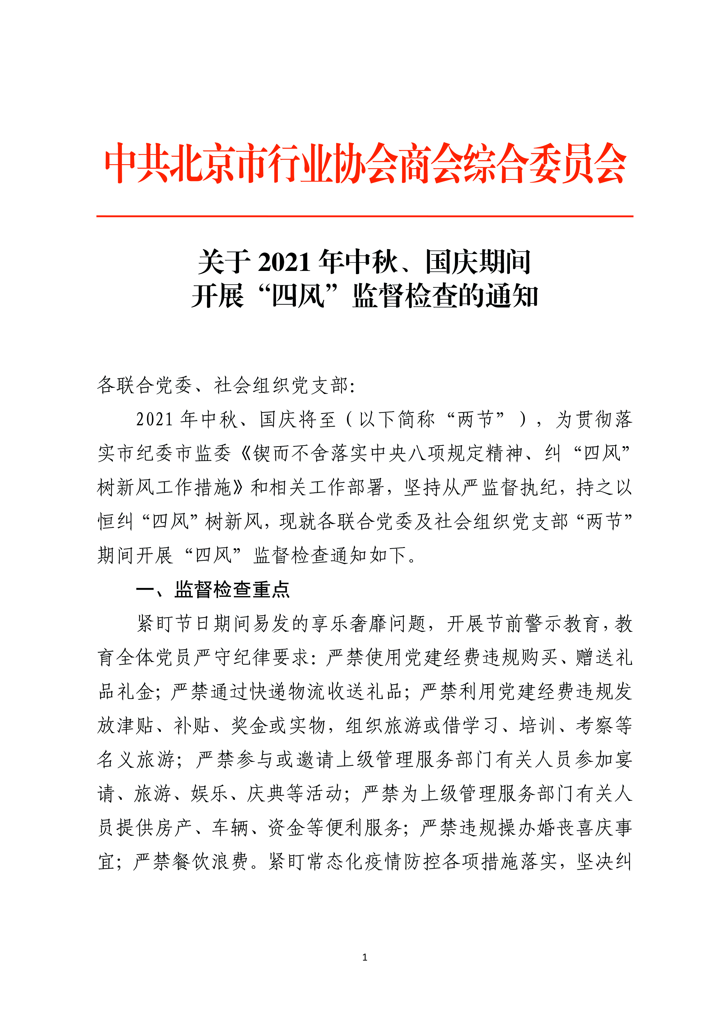 關(guān)于2021年中秋、國(guó)慶開(kāi)展“四風(fēng)”監(jiān)督檢查的通知